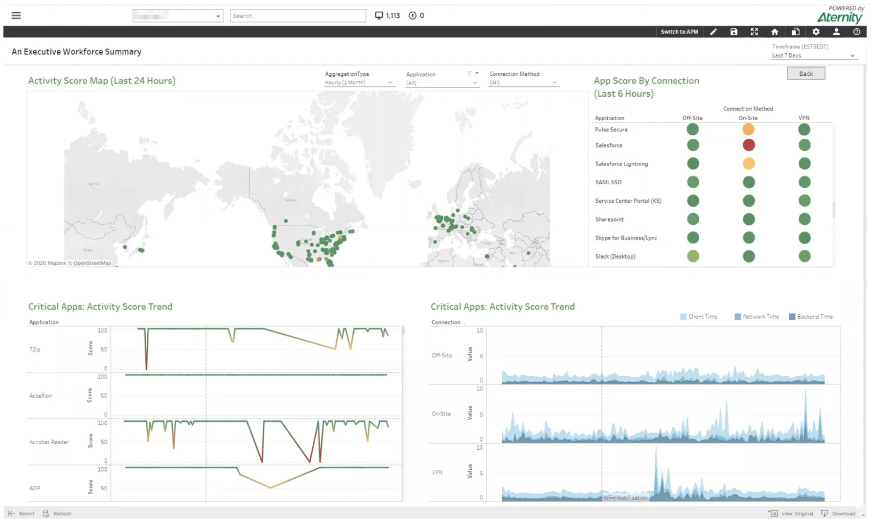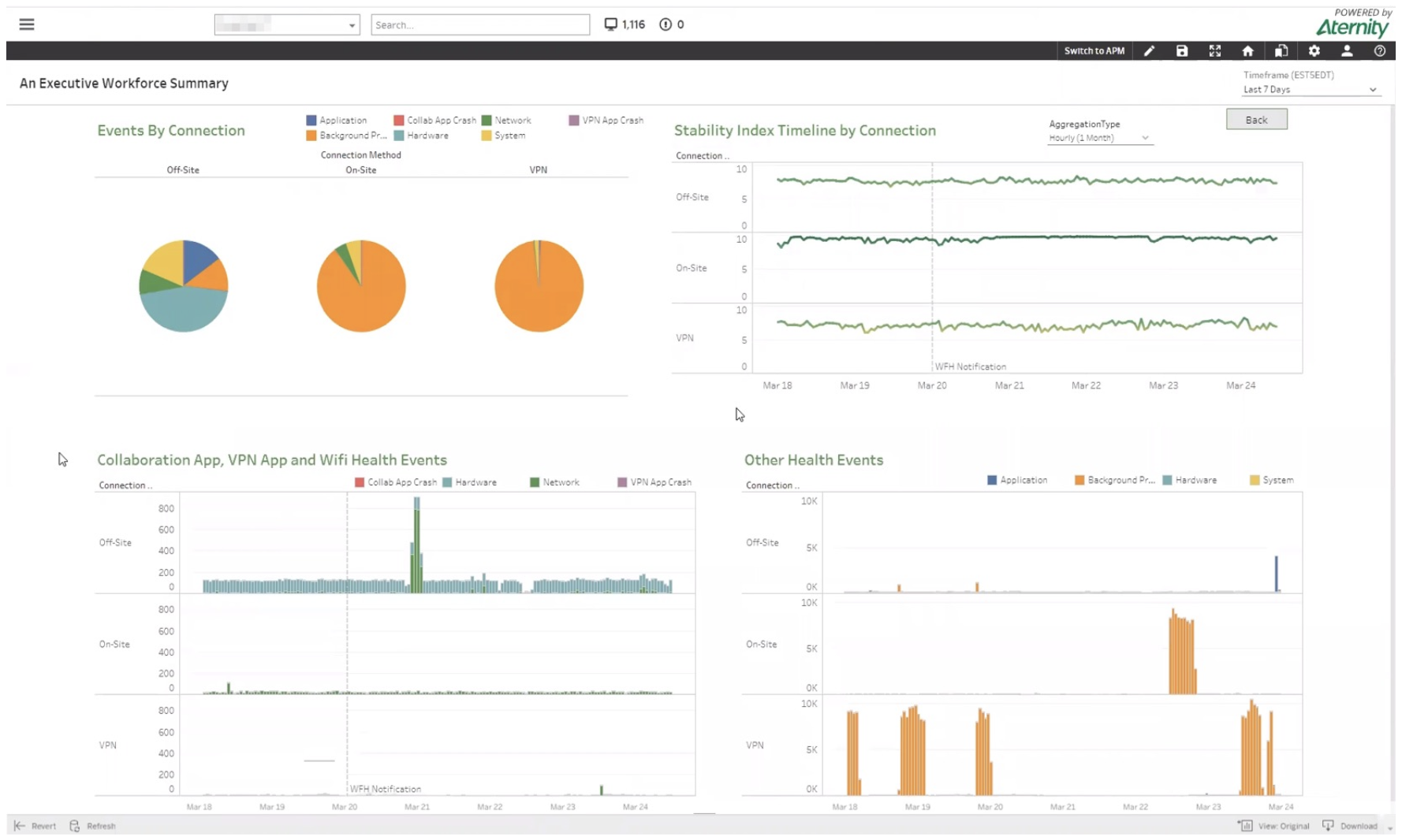 Localice problemas de rendimiento tan pronto como empiecen a suceder por dispositivo, por red o por zona.