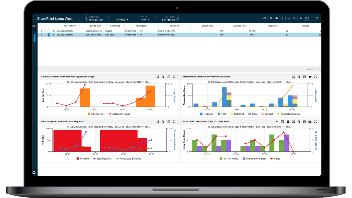 Una solución completa con capacidades avanzadas de monitoreo y análisis para asegurar el desempeño óptimo de redes y aplicaciones en tiempo real y de manera histórica.