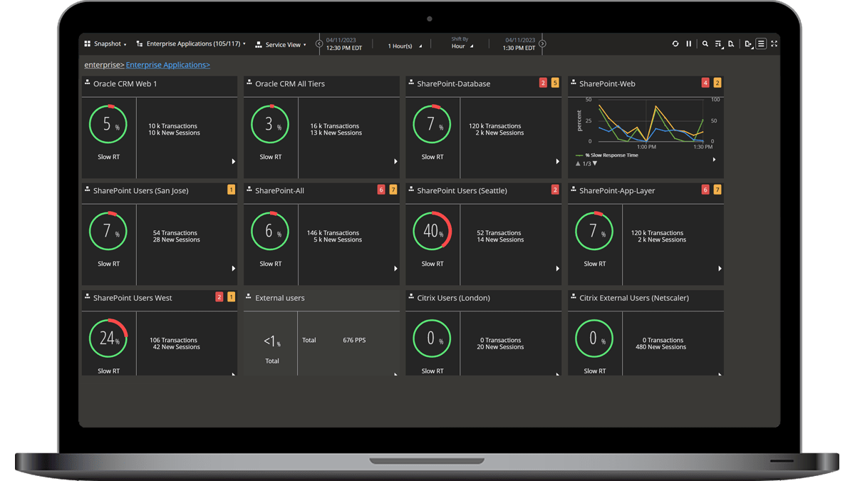 La plataforma nGenius ONE de NetScout Systems ofrece una visualización en tiempo real del desempeño de servicios de TI, proporcionando métricas de desempeño de múltiples capas de componentes de redes y aplicaciones.